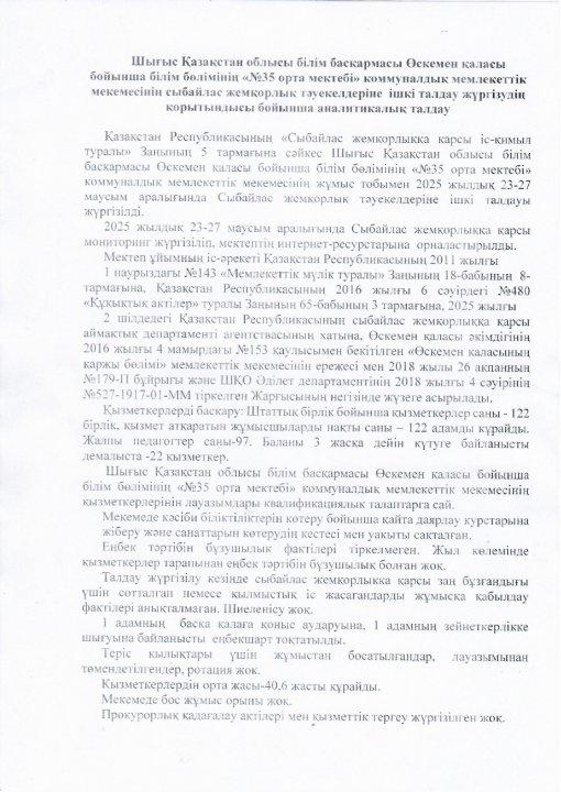 14 август 2025 0 1 2 3 4 5 Сыбайлас жемқорлық тәуекелдеріне ішкі талдау жүргізудің қорытындысы бойынша аналитикалық талдау