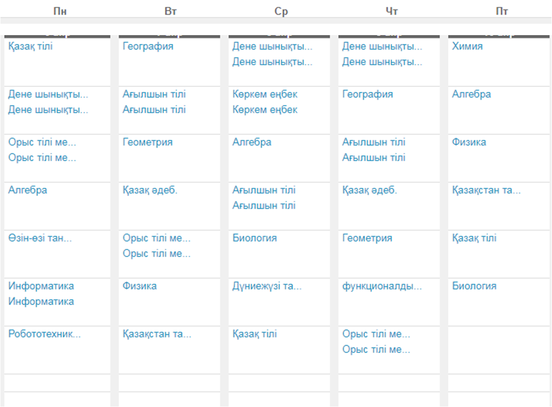 7 сынып сабақ кестесі