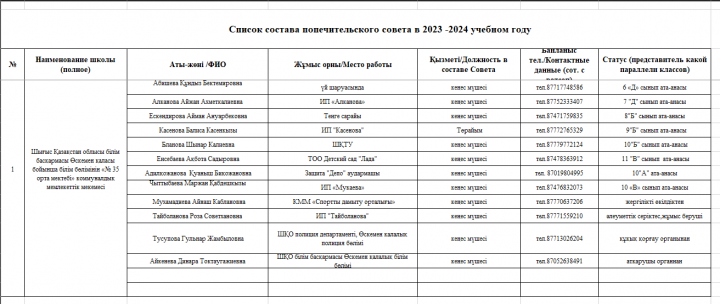 Қамқоршылық кеңесінің құрамы » Коммунальное государственное учреждение "Средняя школа № 35" отдела образования по городу Усть-Каменогорску управления образования ВКО